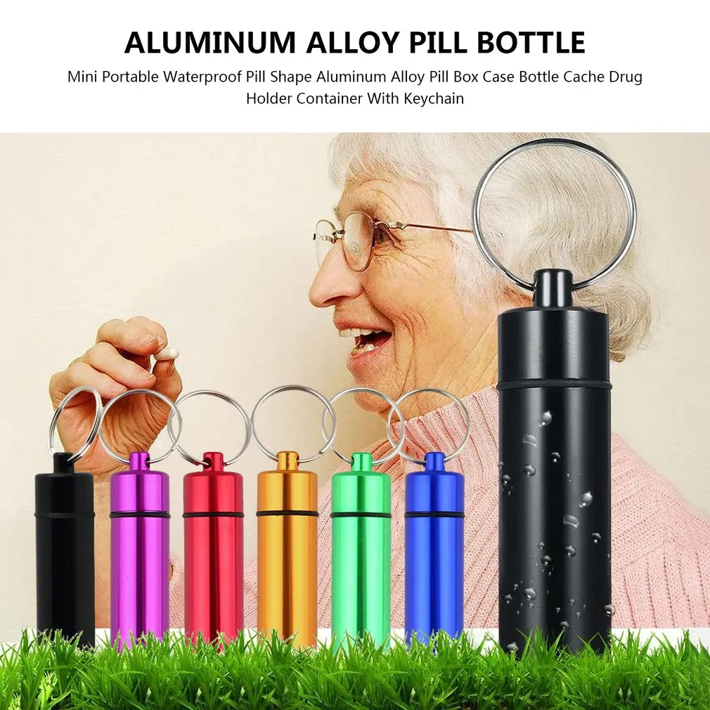 How to buy 1PC Pill Box Case Bottle Waterproof Aluminum Cache Drug Holder Container Keychain Medicine Box Heal