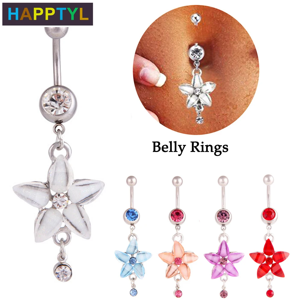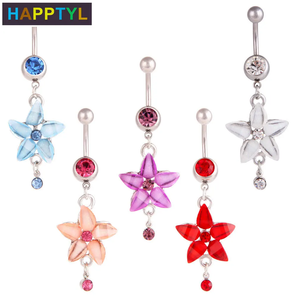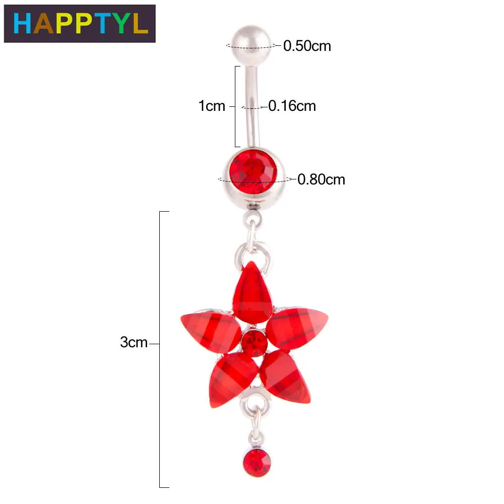 Bargain HAPPTYL 316 Medical Stainless Steel Dangle Belly Button Rings for Women Girls Body Curved Barbell P