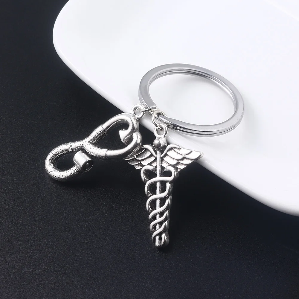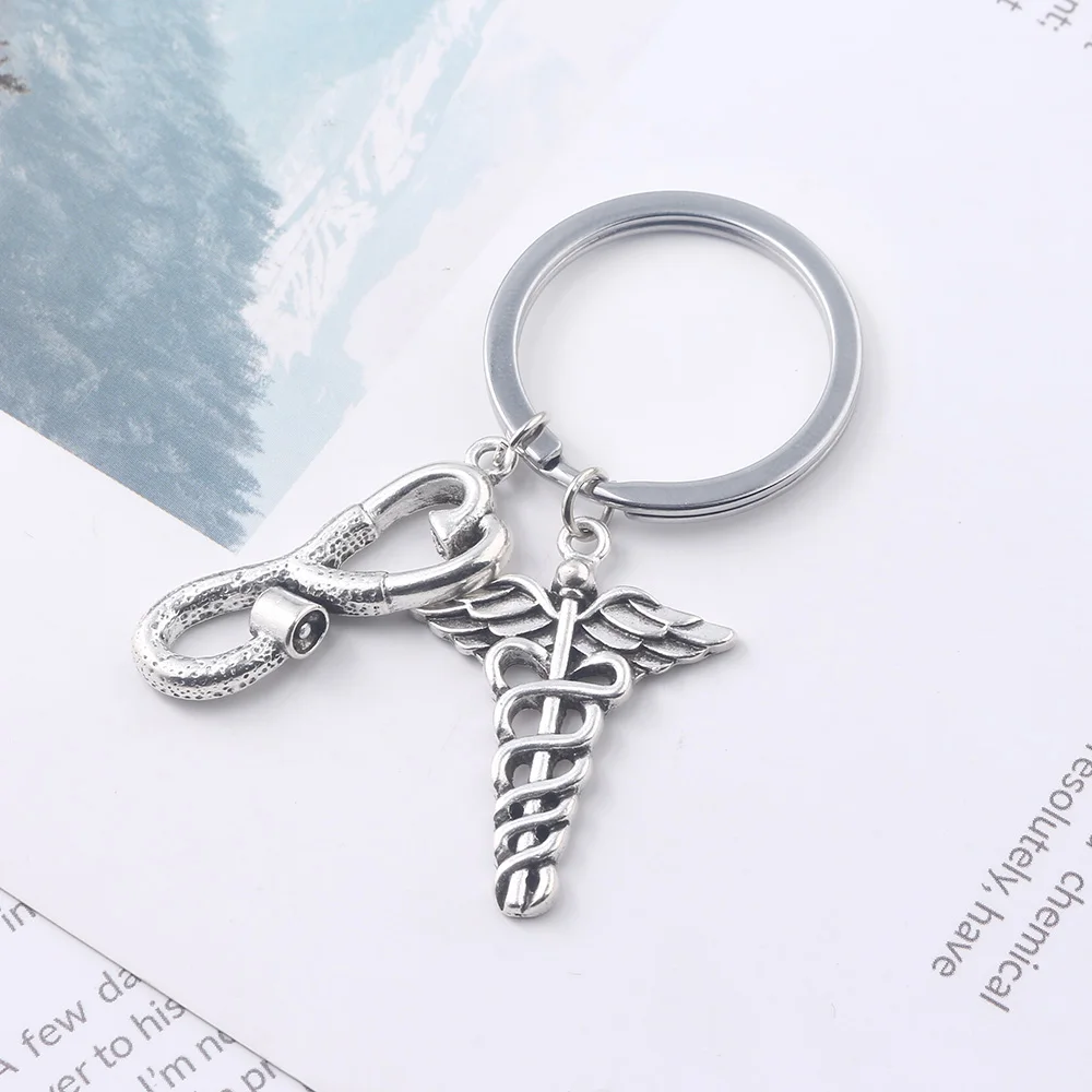 Premium Medical Equipment Stethoscope Lariat Heart Keychain Medical Symbol To Doctors Nurses Best Gift Silv