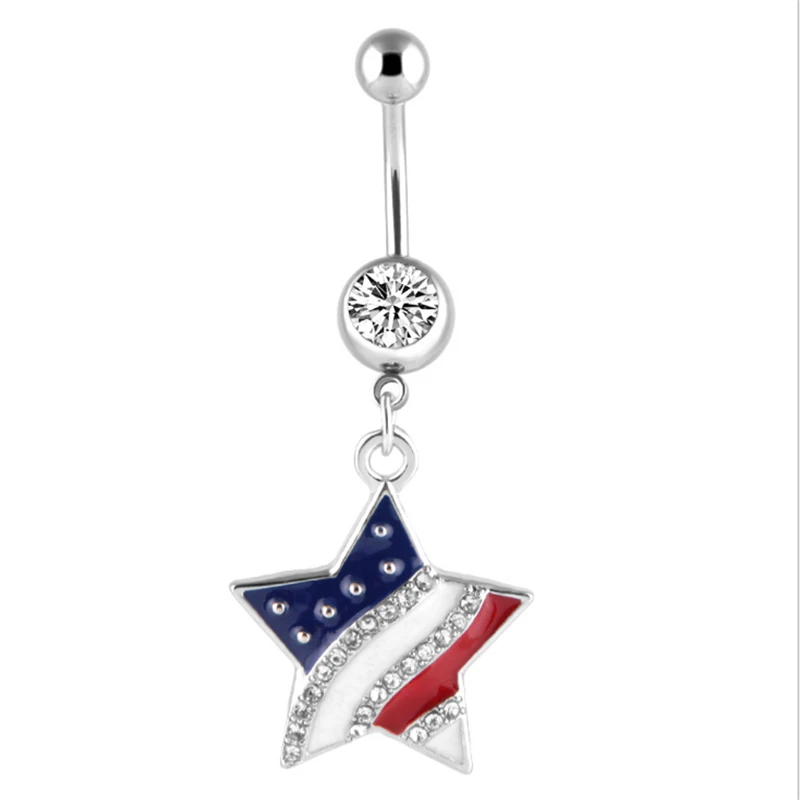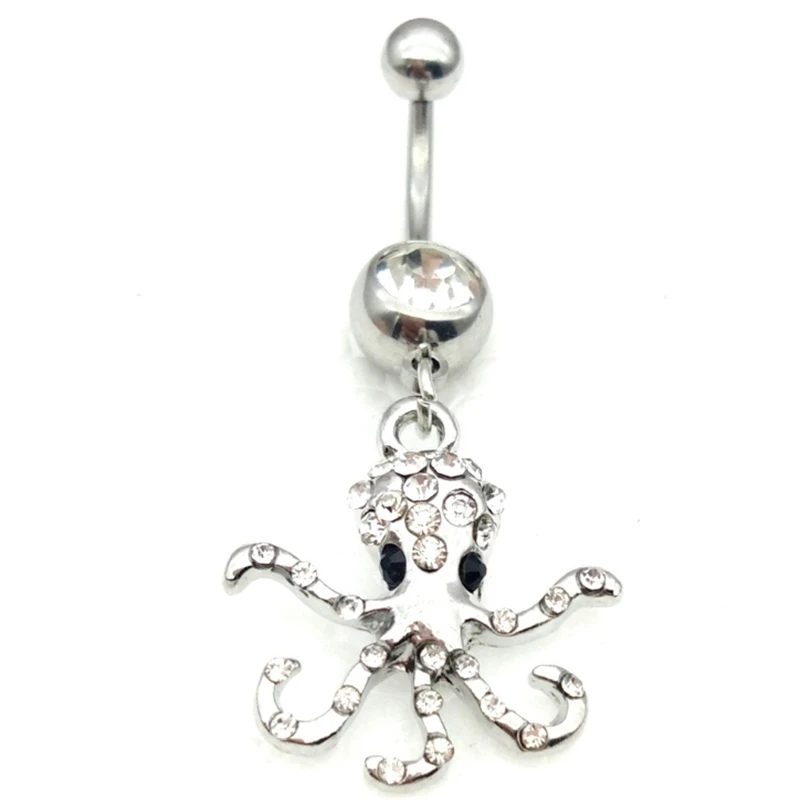 On sale new style medical stainless steel octopus/blue pentagram navel rings crystal cross belly button rin
