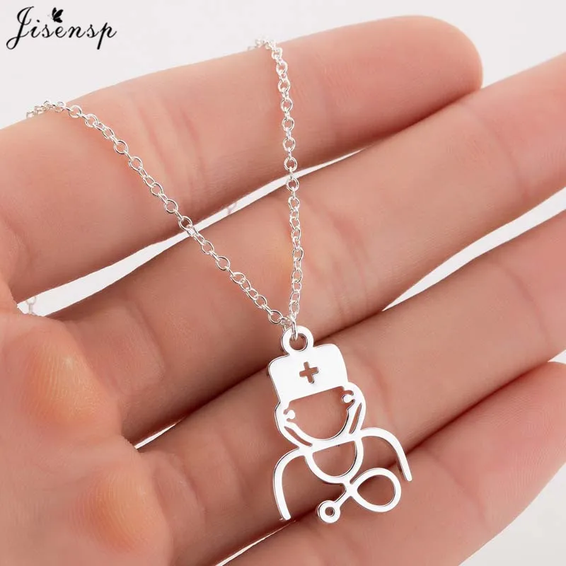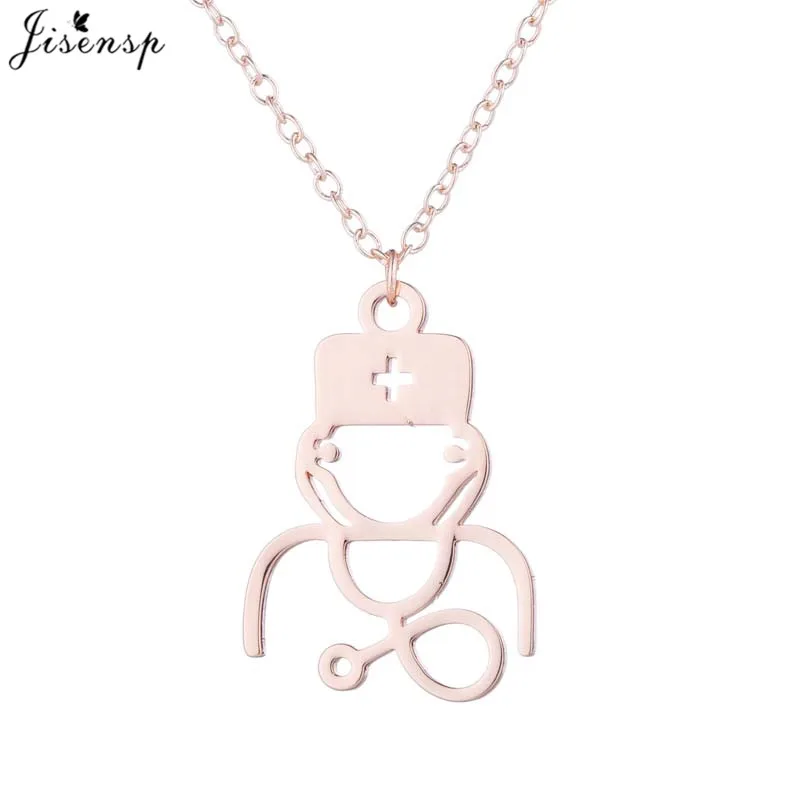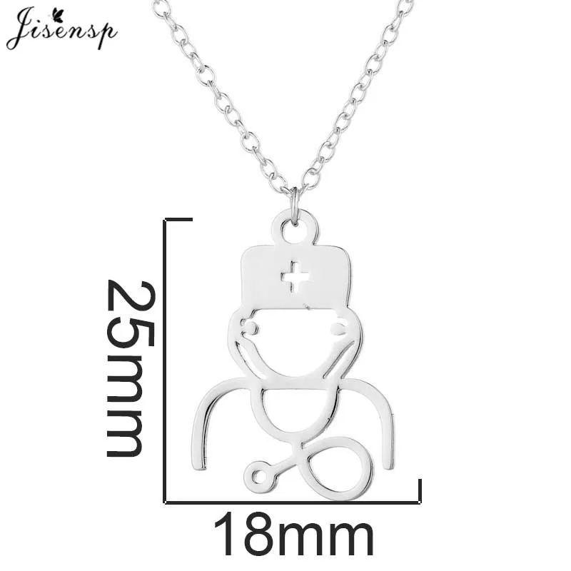 Cashback Jisensp Stainless Steel Medical Stethoscope Pendant Necklace Simple Fashion Doctor Necklace for Wom