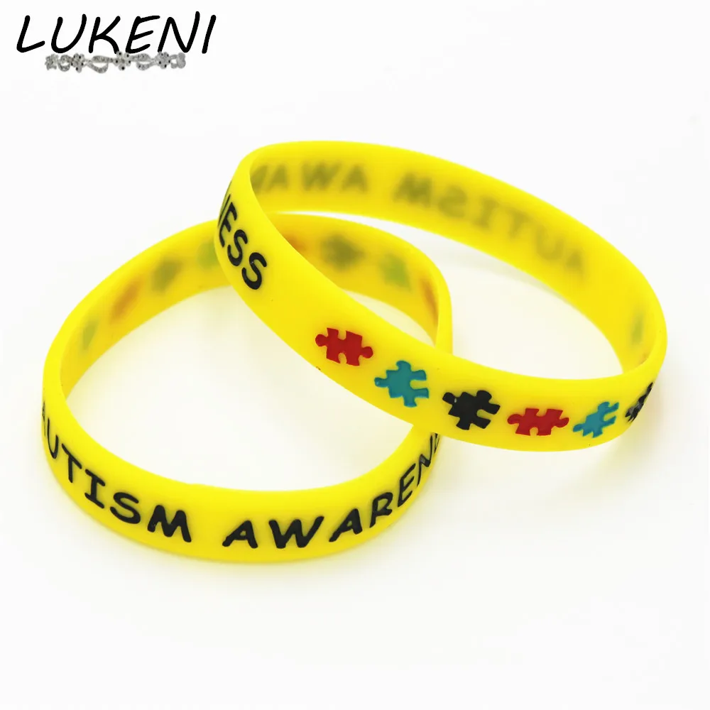 Buy LUKENI 1PC Yellow Autism Awareness Puzzle Silicone Bracelets&Bangles Medical alert Colourful Wristb | 1PC Fashion No Excuses Motivation Silicone Wristband White Rubber Bracelets & Bangles Used In Any Sport Activities Gift SH076