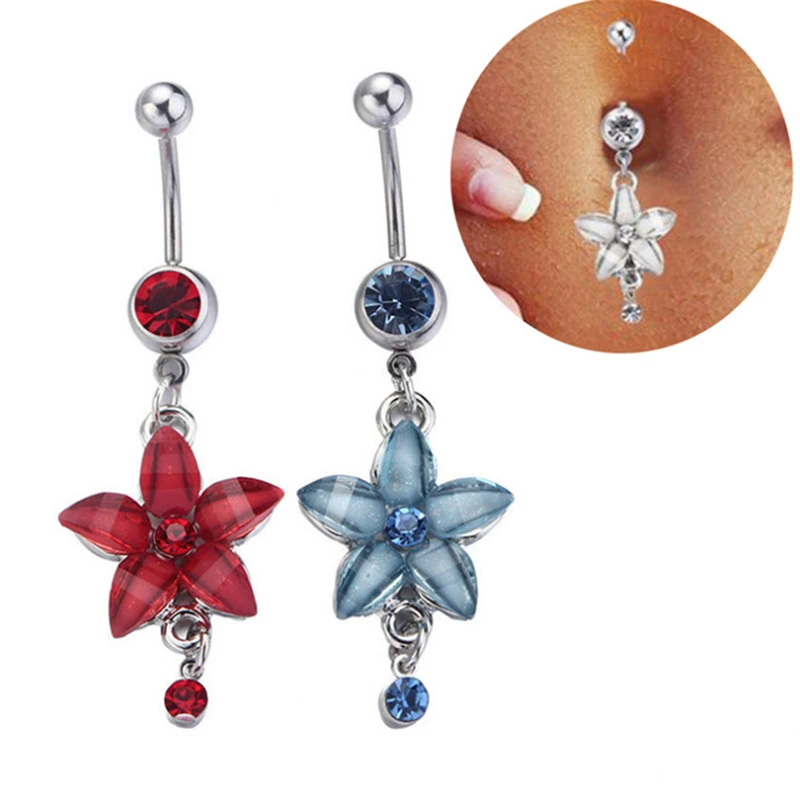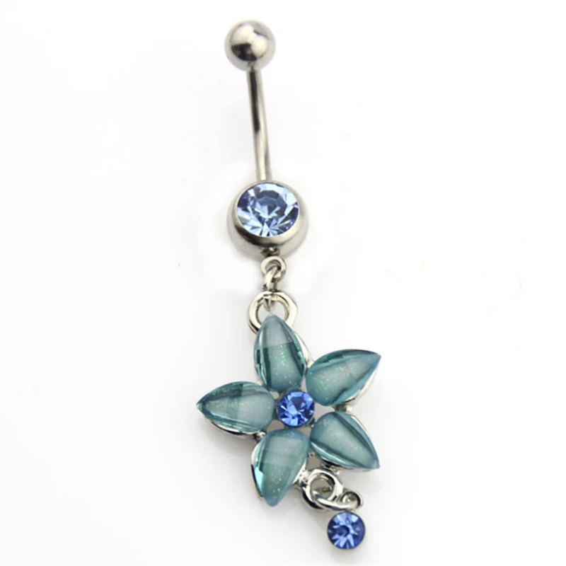 Discount new hot medical stainless steelred/blue flowers navel piercing navel rings crystal belly button rin
