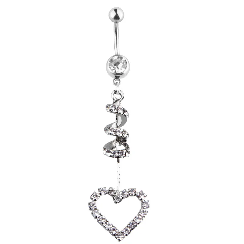 Sale New Product High quality Hearts Style Rhinestone Crystal Medical Steel Belly Button Ring Dangle Nav