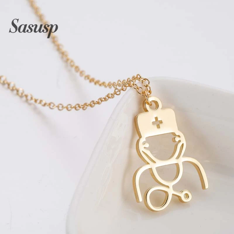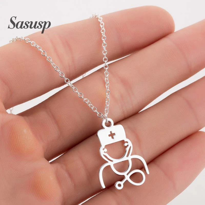 Promo Sasusp Fashion Lovely Stethoscope Pendant Necklace Women Men Medical tools Necklaces Sweater Chain