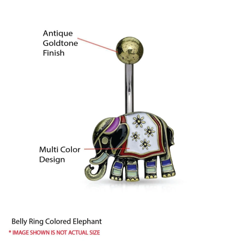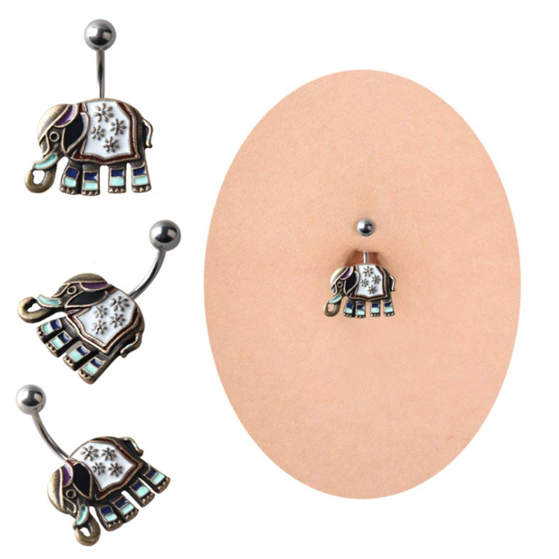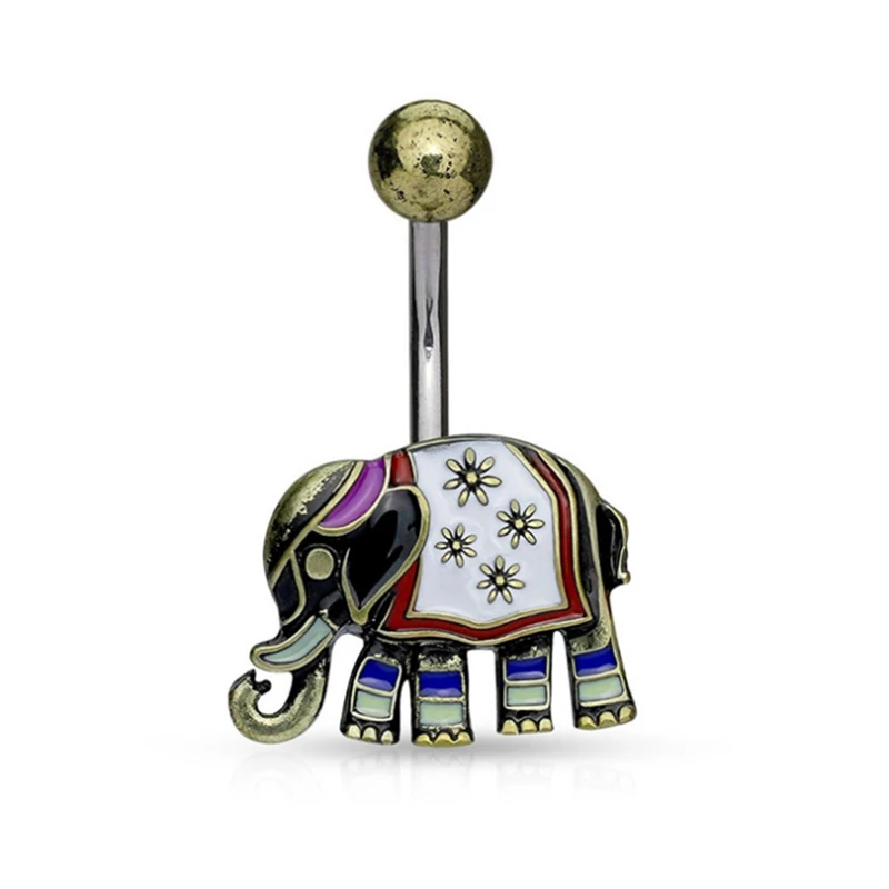 Promo fashion cute animal Elephan medical stainless steel navel piercing navel ring Silver belly button r